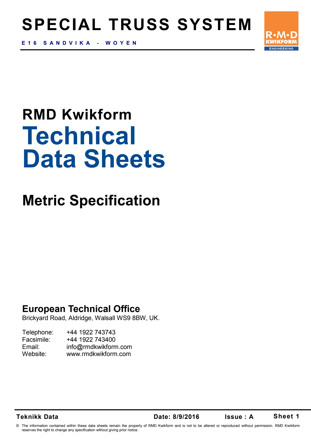 Fagverket består av 3- og 4-meters paneler, samt 0,5 meters justeringspaneler. Panelene boltes sammen og avstives med enkelt vinkelstål.